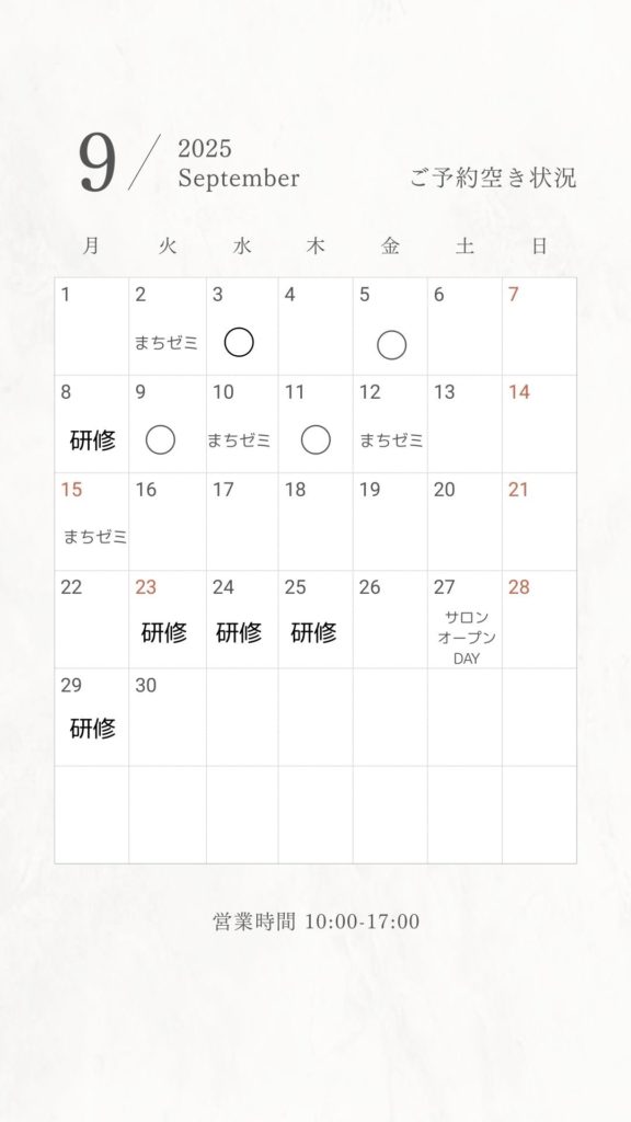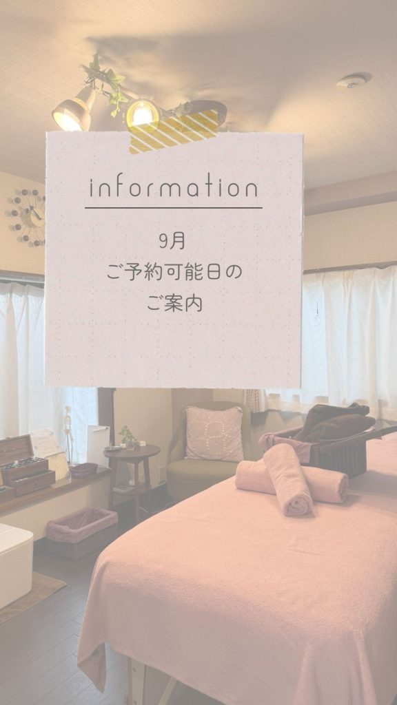 9月のご予約可能日のご案内です。