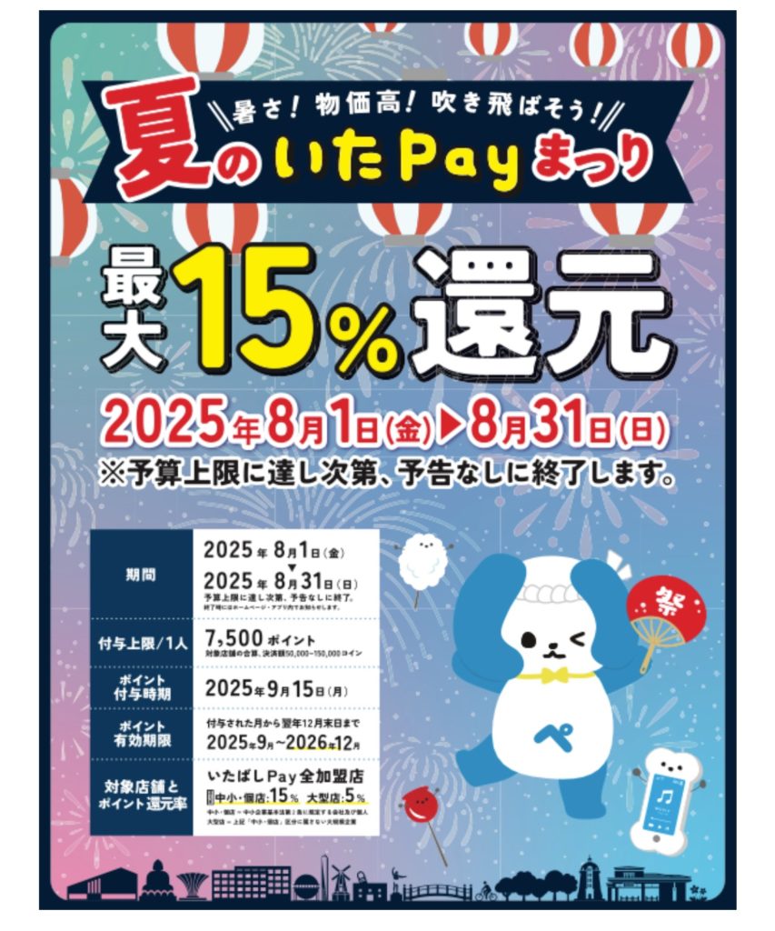 📱「いたばしPay」で最大15%ポイント還元中✨