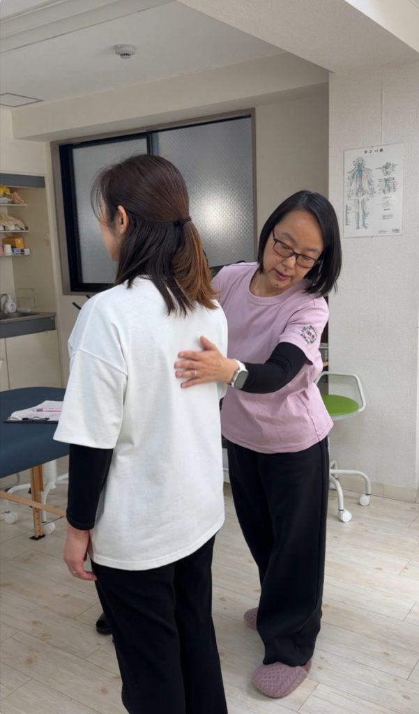 お体のバランスや姿勢を拝見しています。