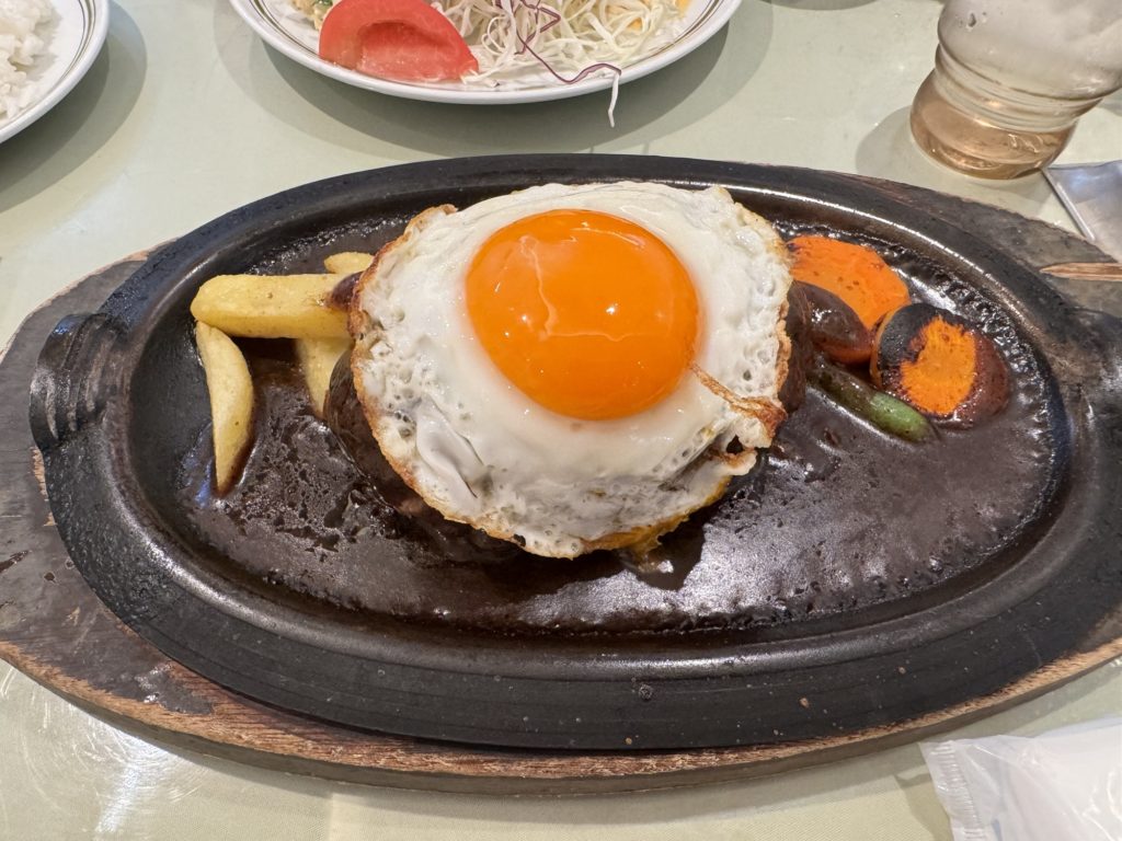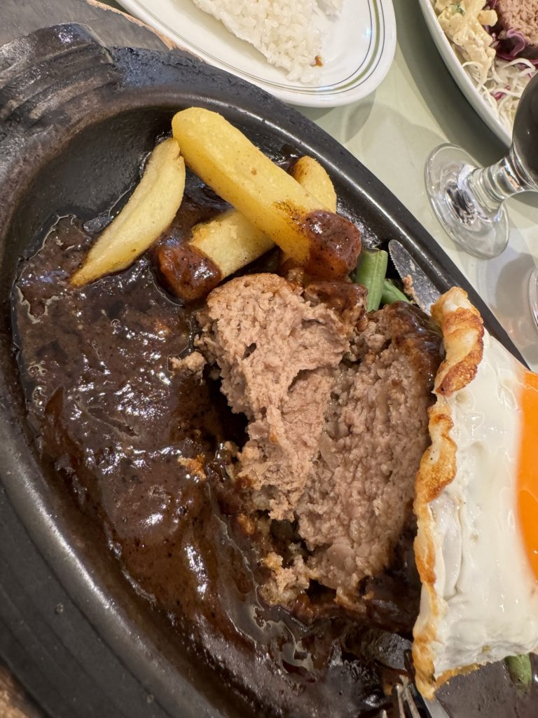 これだけのデミグラスソースですが、味が濃くなく、ボリュームもあり、私は半分でギブアップ。