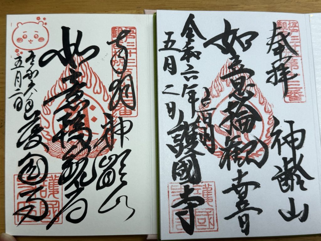 左がコラボ御朱印。右が私がいただいた通常の御朱印。