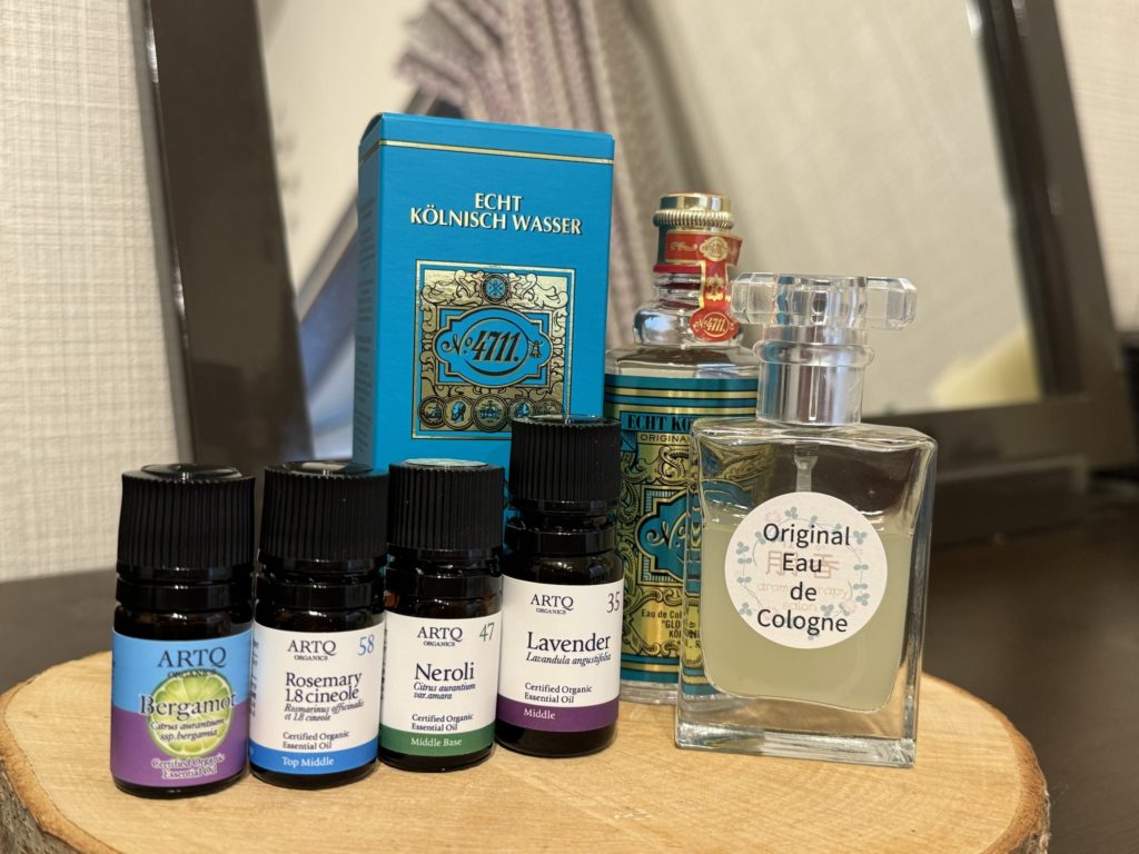 ベルガモットなどの柑橘系をベースに、ローズマリーなどのハーブをアルコールに漬け込んだアルコール水(チンキ)が元祖と言われ、当初は体を拭いたり、消毒薬として使用されていたものが、香りを楽しむ目的で使われるようになり、1792年に世界で初めて作られた元祖オーデコロン「4711 」。