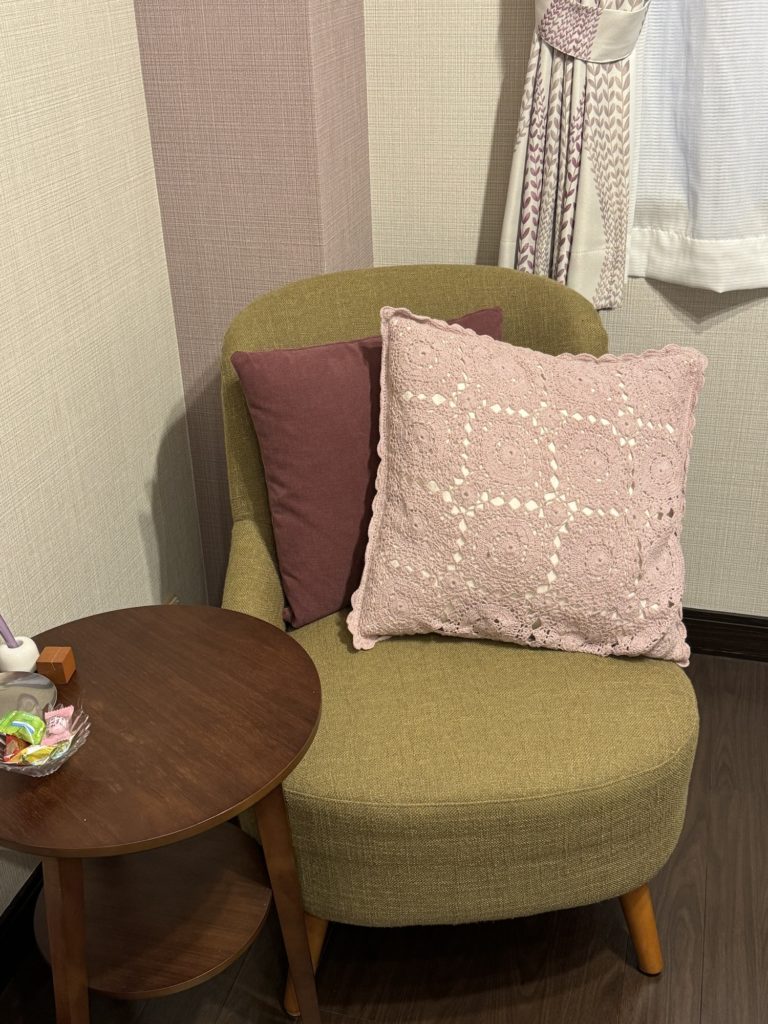 こちらの1人掛けソファーでお寛ぎいただきます。