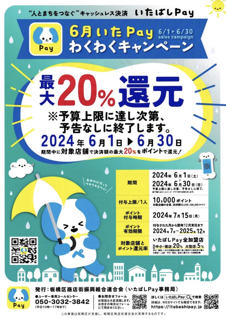 今日から、いたばしPAYの20%ポイントキャンペーンが始まりました。