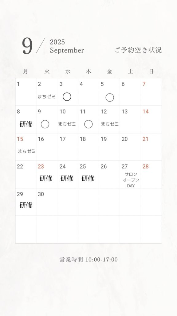 《9月》3日(水)、5日(金)、9日(火)、11日(木)